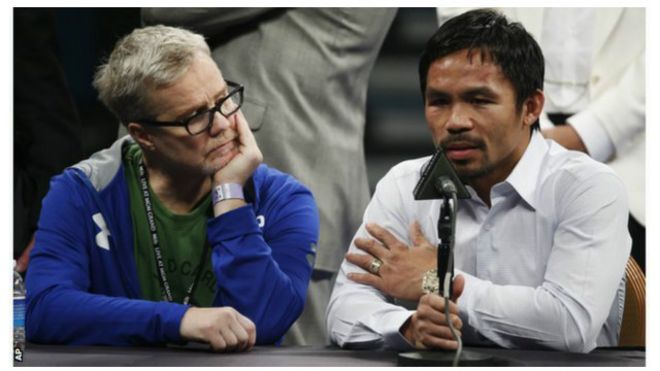 Pacquiao mwenye umri wa miaka 36 alinyimwa dawa ya kupunguza maumivu kabla ya mechi alipokuwa akilalama kuteguka bega.
