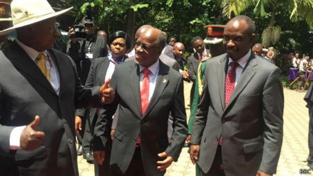 Marais Paul Kagame (Rwanda), Uhuru Kenyatta (Kenya) na Yoweri Museveni (Uganda) walihudhuria mkutano huo mjini Arusha.